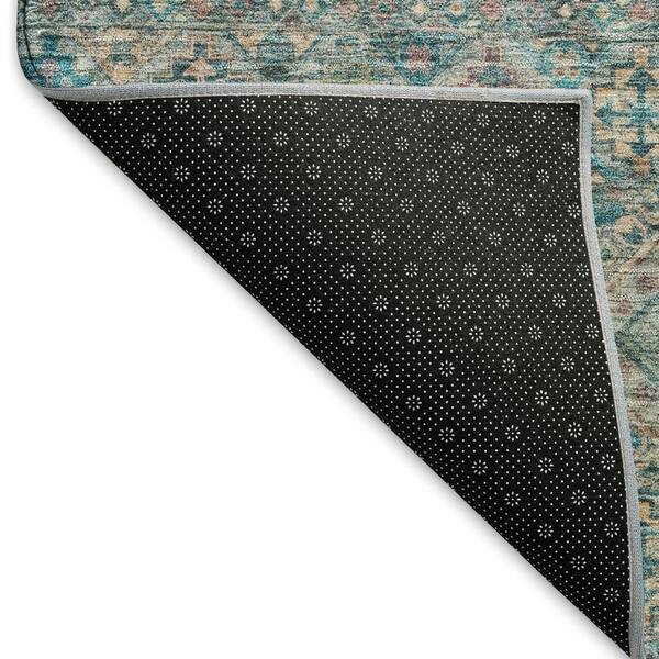 Mayfield Premium Machine Washable Abstract AMF1641 Teal 8 ft. x 8 ft. Round Rug