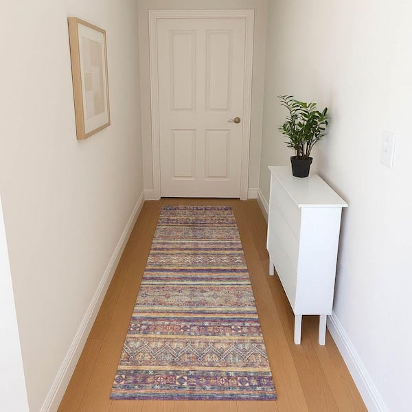 Mayfield Premium Machine Washable Abstract AMF1644 Blue 2 ft. 3 in. x 7 ft. 6 in. Runner Rug