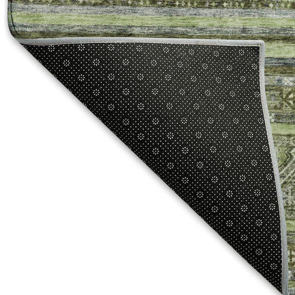 Mayfield Premium Machine Washable Abstract AMF1644 Olive 8 ft. x 8 ft. Round Rug