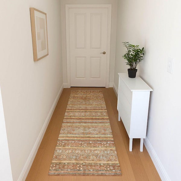 Mayfield Premium Machine Washable Abstract AMF1644 Terracotta 2 ft. 3 in. x 7 ft. 6 in. Runner Rug