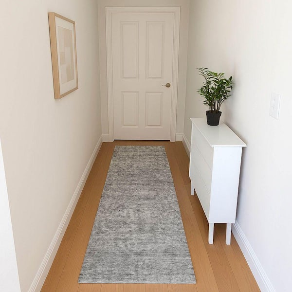 Mayfield Premium Machine Washable Abstract AMF1645 Gray 2 ft. 3 in. x 7 ft. 6 in. Runner Rug