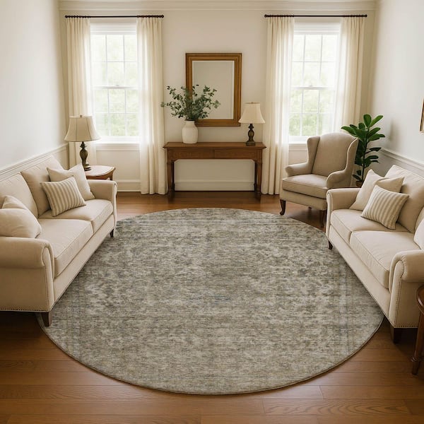 Mayfield Premium Machine Washable Abstract AMF1645 Pewter 8 ft. x 8 ft. Round Rug