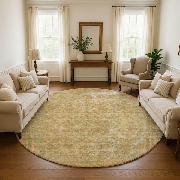 Mayfield Premium Machine Washable Abstract AMF1646 Coral 8 ft. x 8 ft. Round Rug