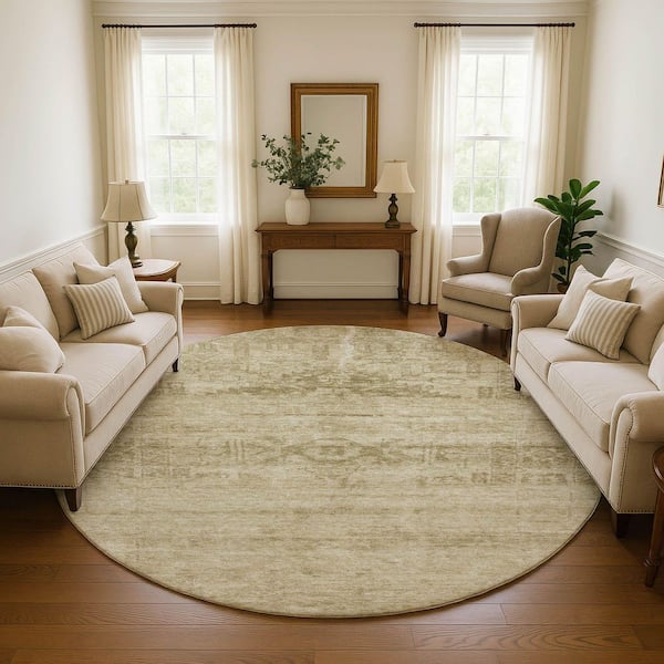Mayfield Premium Machine Washable Abstract AMF1647 Beige 8 ft. x 8 ft. Round Rug