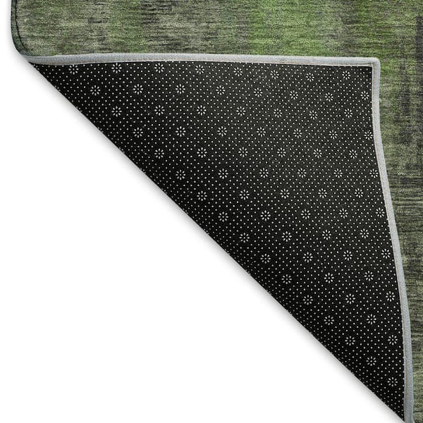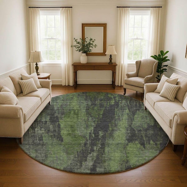 Mayfield Premium Machine Washable Abstract AMF1648 Olive 8 ft. x 8 ft. Round Rug
