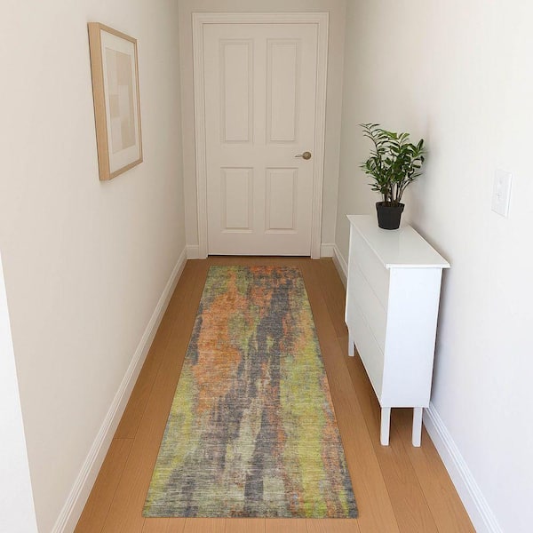 Mayfield Premium Machine Washable Abstract AMF1648 Orange 2 ft. 3 in. x 7 ft. 6 in. Runner Rug