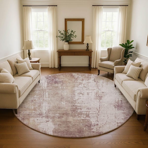 Mayfield Premium Machine Washable Abstract AMF1649 Blush 8 ft. x 8 ft. Round Rug