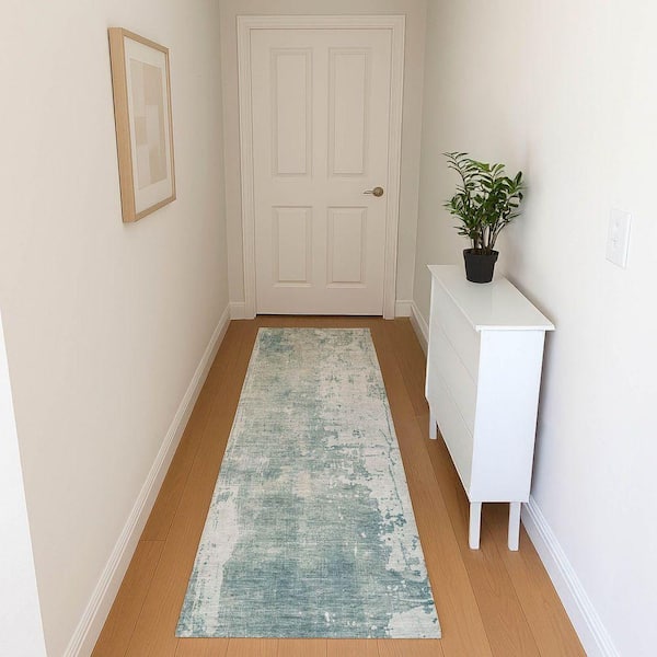 Mayfield Premium Machine Washable Abstract AMF1649 Turquoise 2 ft. 3 in. x 7 ft. 6 in. Runner Rug