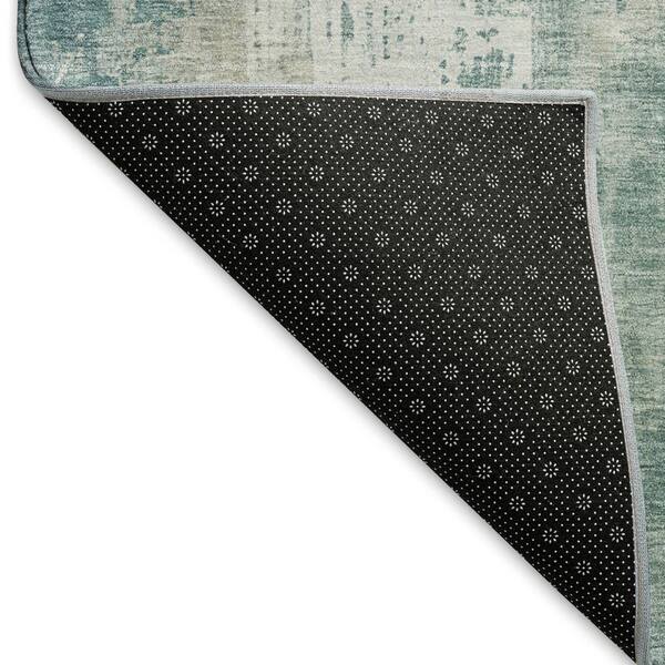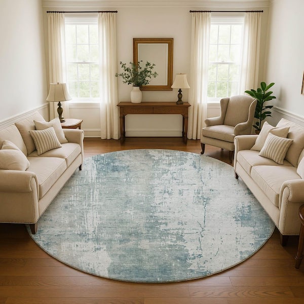 Mayfield Premium Machine Washable Abstract AMF1649 Turquoise 8 ft. x 8 ft. Round Rug
