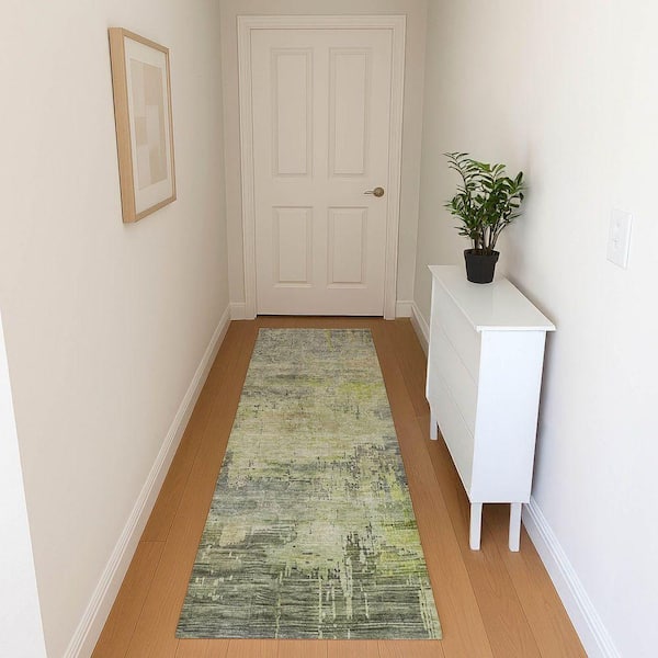 Mayfield Premium Machine Washable Abstract AMF1650 Aloe 2 ft. 3 in. x 7 ft. 6 in. Runner Rug