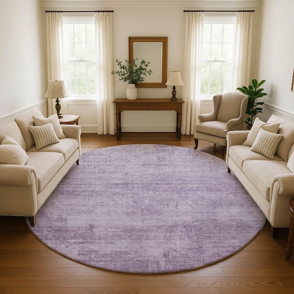 Mayfield Premium Machine Washable Abstract AMF1650 Lavender 8 ft. x 8 ft. Round Rug