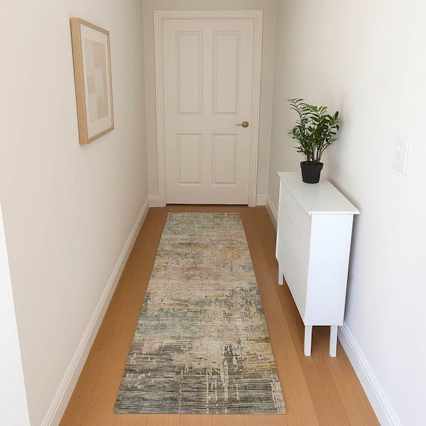 Mayfield Premium Machine Washable Abstract AMF1650 Sage 2 ft. 3 in. x 7 ft. 6 in. Runner Rug