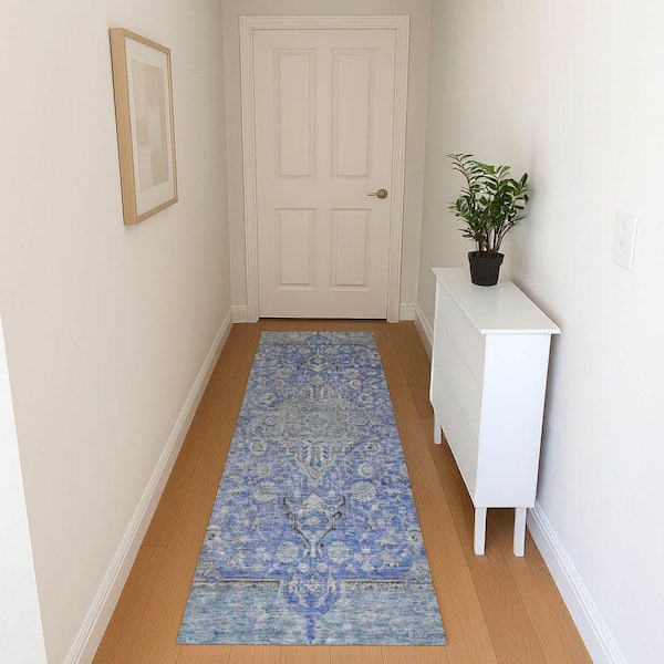 Mayfield Premium Machine Washable Abstract AMF1651 Blue 2 ft. 3 in. x 7 ft. 6 in. Runner Rug