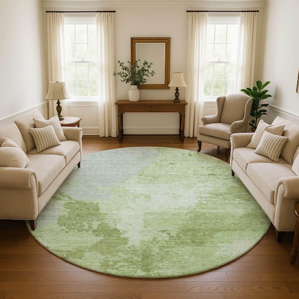 Mayfield Premium Machine Washable Abstract AMF1652 Aloe 8 ft. x 8 ft. Round Rug