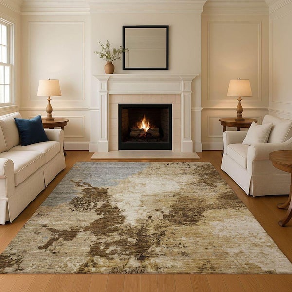 Mayfield Premium Machine Washable Abstract AMF1652 Brown 3 ft. x 4 ft. Area Rug