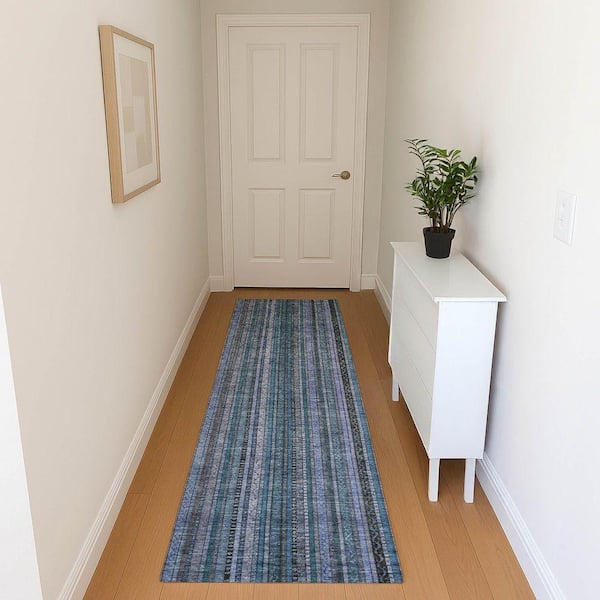 Mayfield Premium Machine Washable Abstract AMF1654 Blue 2 ft. 3 in. x 7 ft. 6 in. Runner Rug