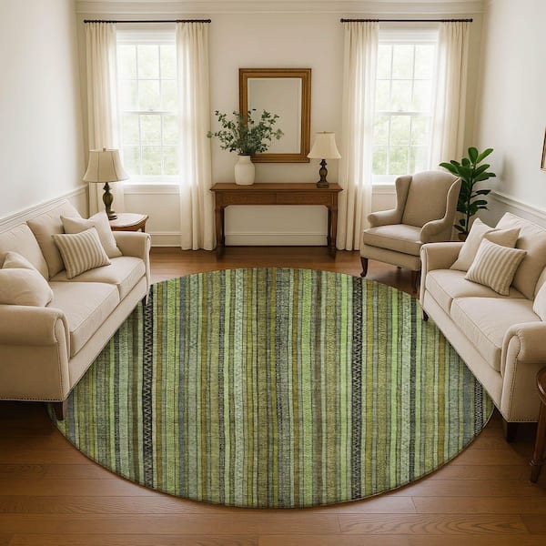 Mayfield Premium Machine Washable Abstract AMF1654 Green 8 ft. x 8 ft. Round Rug