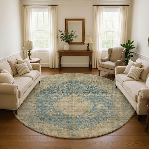 Mayfield Premium Machine Washable Abstract AMF1657 Blue 8 ft. x 8 ft. Round Rug