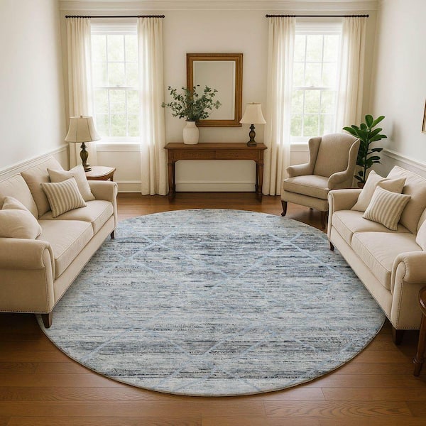 Mayfield Premium Machine Washable Abstract AMF1658 Blue 8 ft. x 8 ft. Round Rug