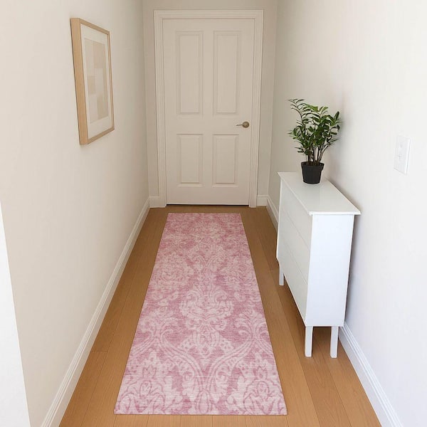 Mayfield Premium Machine Washable Abstract AMF1659 Pink 2 ft. 3 in. x 7 ft. 6 in. Runner Rug