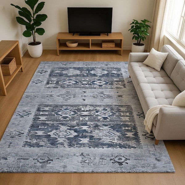 Mayfield Premium Machine Washable Abstract AMF1662 Blue 3 ft. x 4 ft. Area Rug