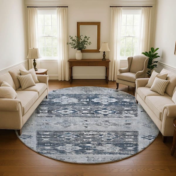 Mayfield Premium Machine Washable Abstract AMF1662 Blue 8 ft. x 8 ft. Round Rug