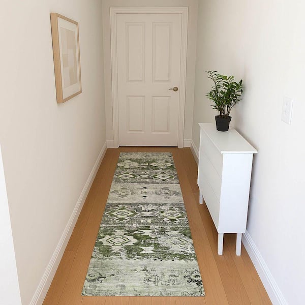 Mayfield Premium Machine Washable Abstract AMF1662 Olive 2 ft. 3 in. x 7 ft. 6 in. Runner Rug