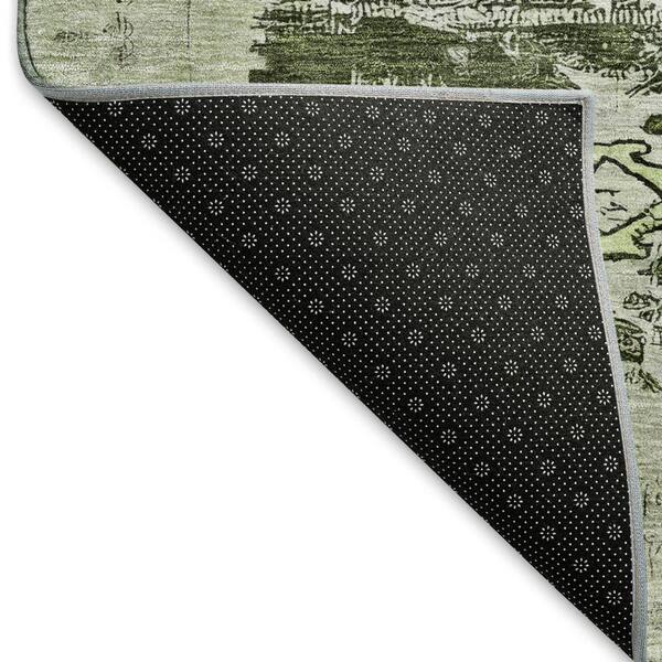 Mayfield Premium Machine Washable Abstract AMF1662 Olive 8 ft. x 8 ft. Round Rug