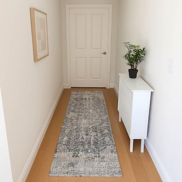 Mayfield Premium Machine Washable Abstract AMF1663 Charcoal 2 ft. 3 in. x 7 ft. 6 in. Runner Rug