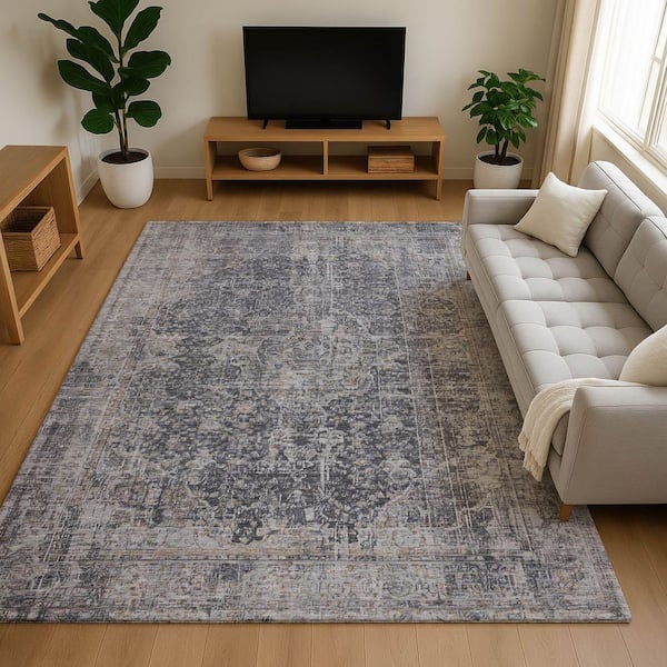 Mayfield Premium Machine Washable Abstract AMF1663 Charcoal 5 ft. x 7 ft. 6 in. Area Rug