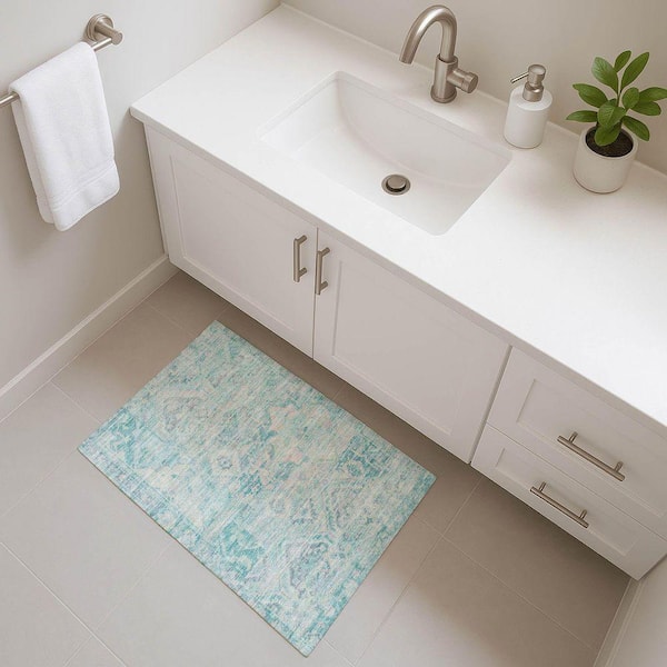 Mayfield Premium Machine Washable Abstract AMF1664 Teal 2 ft. x 3 ft. Area Rug