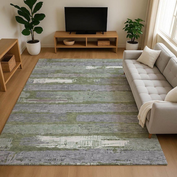 Mayfield Premium Machine Washable Abstract AMF1665 Olive 10 ft. x 14 ft. Area Rug