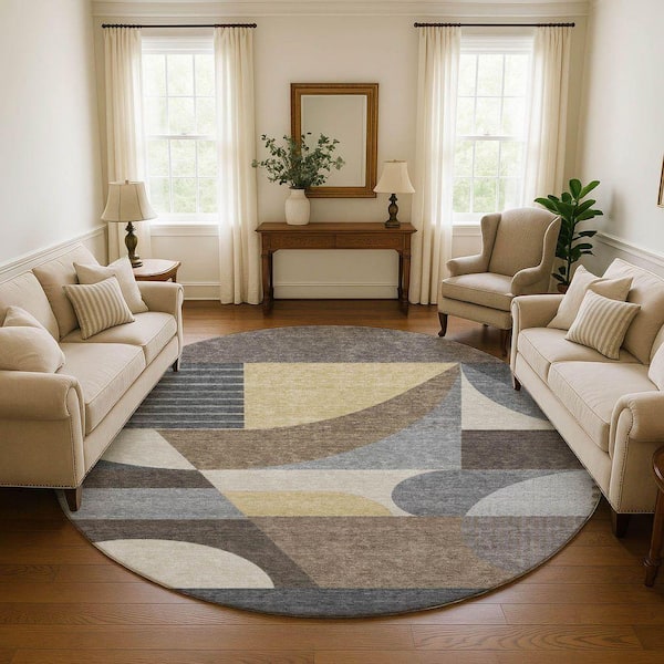 Mayfield Premium Machine Washable Abstract AMF1667 Brown 8 ft. x 8 ft. Round Rug