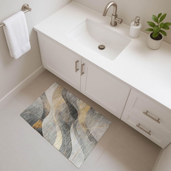 Mayfield Premium Machine Washable Abstract AMF1668 Gray 2 ft. x 3 ft. Area Rug