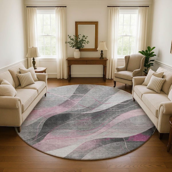 Mayfield Premium Machine Washable Abstract AMF1668 Pink 8 ft. x 8 ft. Round Rug