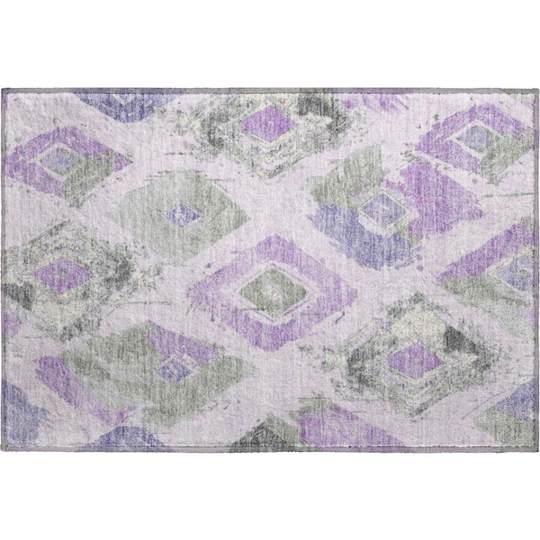 Mayfield Premium Machine Washable Abstract AMF1669 Lavender 2 ft. x 3 ft. Area Rug