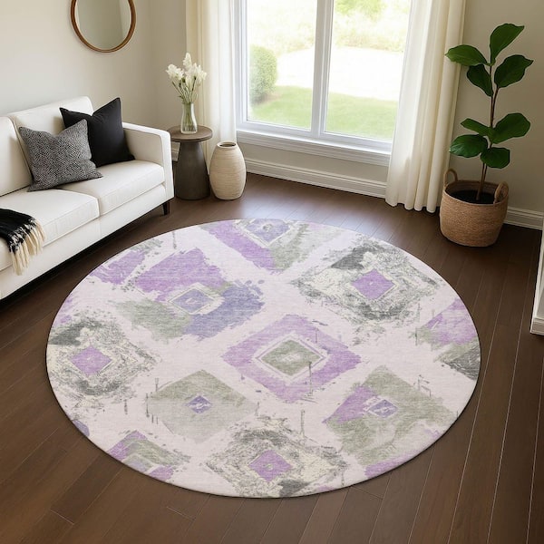 Mayfield Premium Machine Washable Abstract AMF1669 Lavender 8 ft. x 8 ft. Round Rug