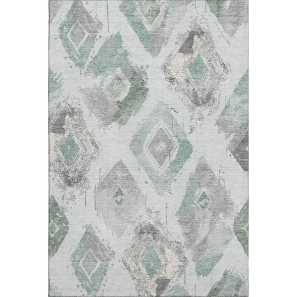 Mayfield Premium Machine Washable Abstract AMF1669 Seafoam 8 ft. x 10 ft. Area Rug