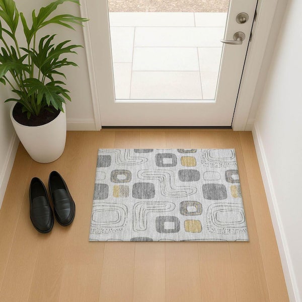 Mayfield Premium Machine Washable Abstract AMF1670 Gray 2 ft. x 3 ft. Area Rug