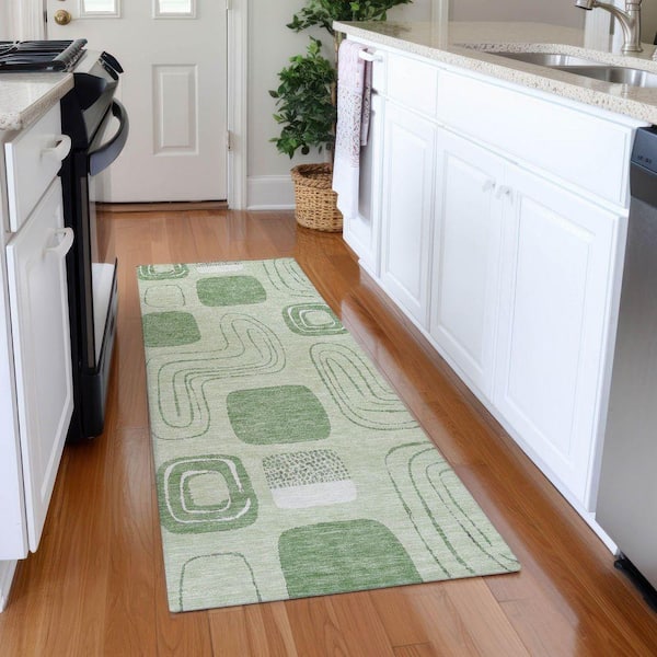Mayfield Premium Machine Washable Abstract AMF1670 Mint 2 ft. 3 in. x 7 ft. 6 in. Runner Rug