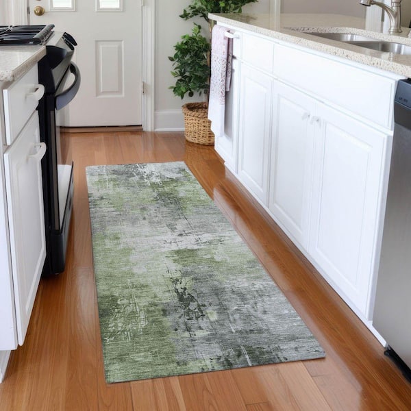 Mayfield Premium Machine Washable Abstract AMF1671 Green 2 ft. 3 in. x 7 ft. 6 in. Runner Rug