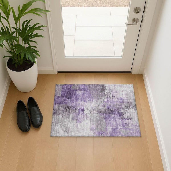 Mayfield Premium Machine Washable Abstract AMF1671 Purple 2 ft. x 3 ft. Area Rug