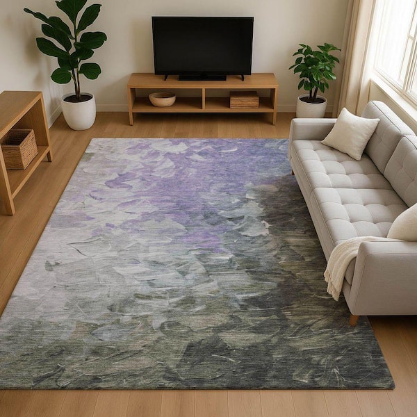 Mayfield Premium Machine Washable Abstract AMF1674 Lavender 9 ft. x 12 ft. Area Rug