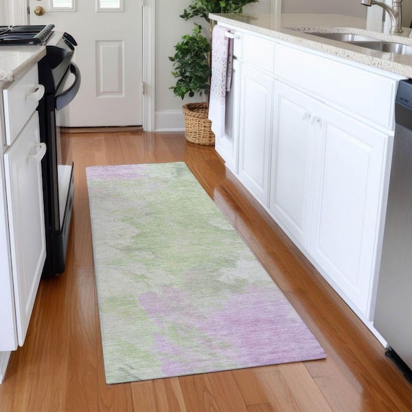 Mayfield Premium Machine Washable Abstract AMF1675 Aloe 2 ft. 3 in. x 7 ft. 6 in. Runner Rug