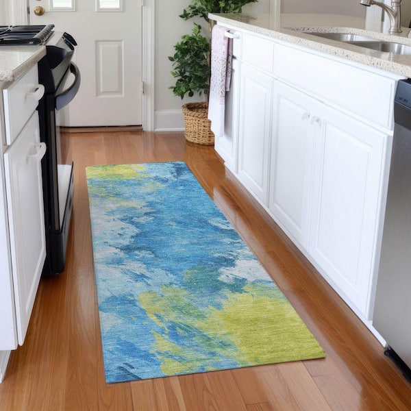 Mayfield Premium Machine Washable Abstract AMF1675 Blue 2 ft. 3 in. x 7 ft. 6 in. Runner Rug