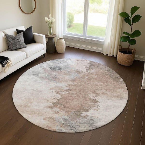 Mayfield Premium Machine Washable Abstract AMF1675 Mocha 8 ft. x 8 ft. Round Rug