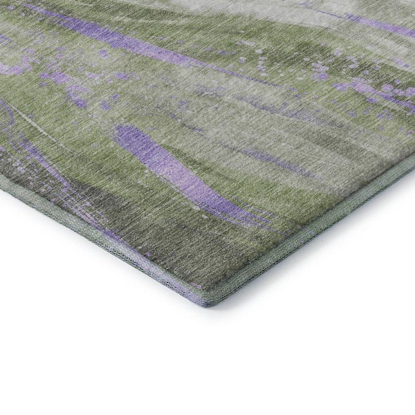 Mayfield Premium Machine Washable Abstract AMF1676 Olive 8 ft. x 10 ft. Area Rug