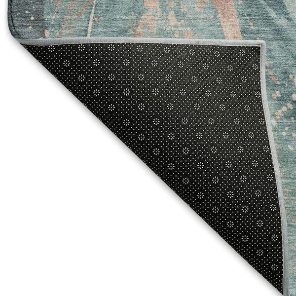 Mayfield Premium Machine Washable Abstract AMF1676 Teal 8 ft. x 8 ft. Round Rug