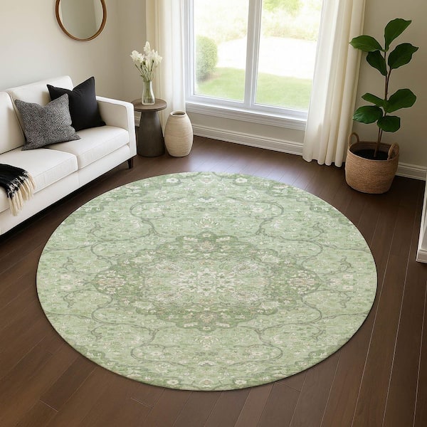 Mayfield Premium Machine Washable Abstract AMF1677 Aloe 8 ft. x 8 ft. Round Rug
