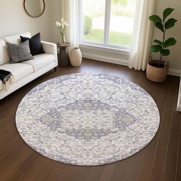 Mayfield Premium Machine Washable Abstract AMF1677 Lavender 8 ft. x 8 ft. Round Rug